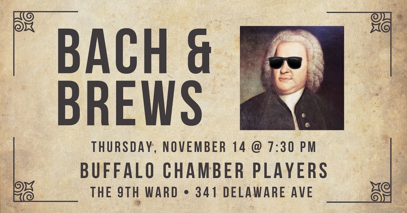 Join the Buffalo Chamber Players at the 9th Ward at Asbury Hall for a fun evening of music and drinks. Bach & Brews concerts are inspired by 18th-century gatherings organized by Johann Sebastian Bach at Café Zimmermann, a bustling cultural establishment in Leipzig where Bach premiered many of his secular works.