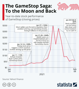 “2022 was the year of the GameStop meme stock, a bizarre financial situation in which hordes of individual investors, organized on social media, got together to pump up the value of the stock of the struggling brick-and-mortar video game retailer to create a squeeze on institutional investors who had shorted the stock.