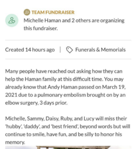fundraiser posted by the family of Tagamini’s client, Andy Haman, confirms that Haman died of a pulmonary embolism due to an elbow surgery that he had three days prior to receiving the ibogaine treatment from Jim Tamagini.