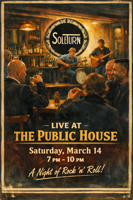 The incredibly talented and creative rock band SoleTurn will perform a very special three-hour concert on Saturday, March 14, beginning at 7 p. m. at the Public House on the Lake at 4914 Lake Shore Rd., in Hamburg.